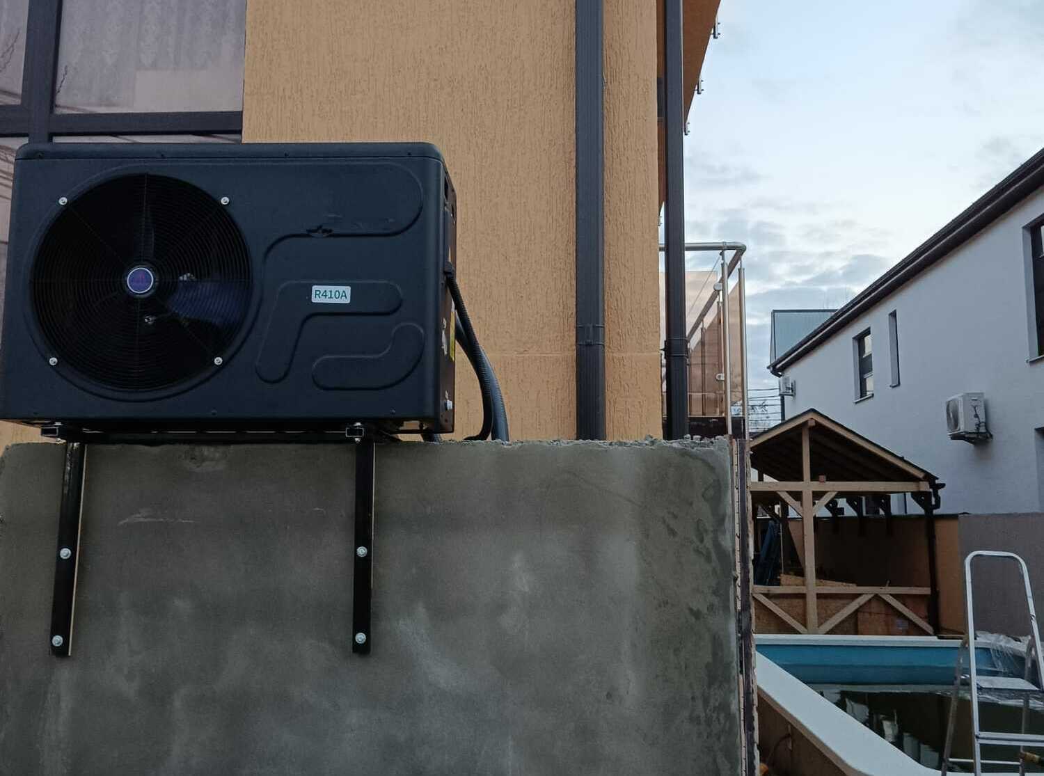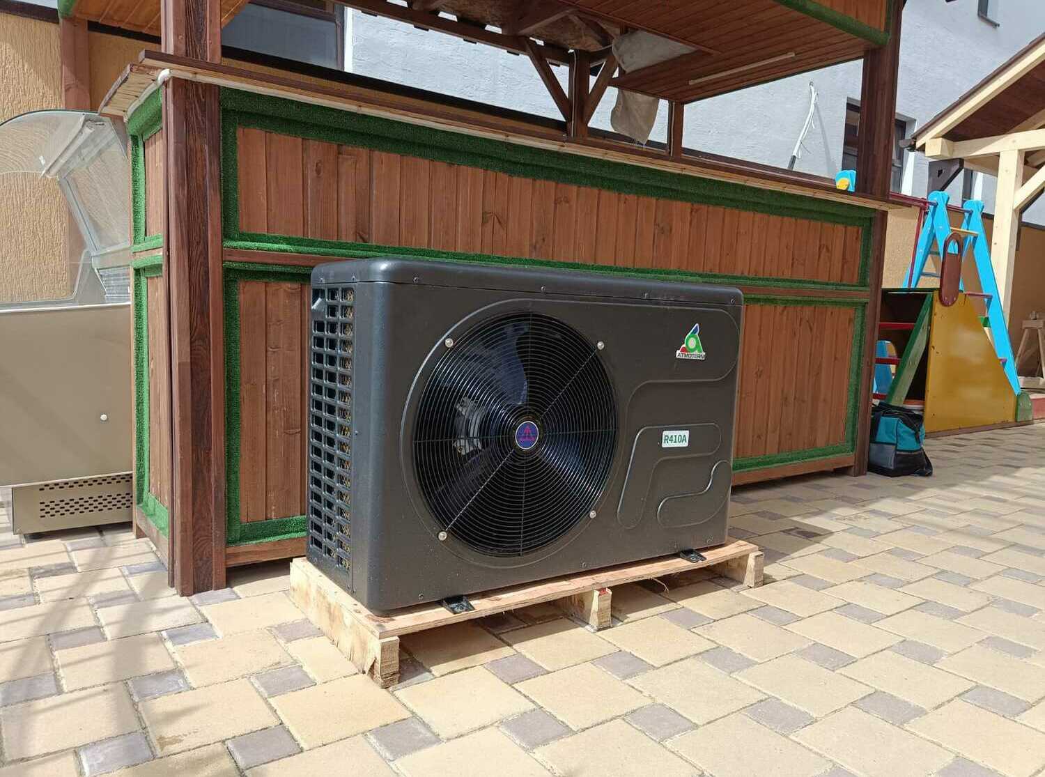 Это устройство, которое забирает тепло из окружающей среды и передаёт его в систему подогрева воды в бассейне. Благодаря такому принципу работы теплового насоса счета за электричество сводятся к минимуму. На 1 кВт потребляемой электроэнергии можно получить до 15 кВт тепловой. Другими словами, чтобы подогреть бассейн объемом Х тепловой насос будет потреблять 1-1,5 кВт, а электрический котёл 15 кВт. Поэтому это самое выгодное решение для бизнеса в сфере средств размещения: гостиниц